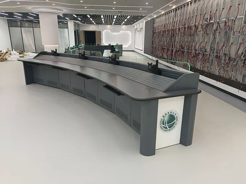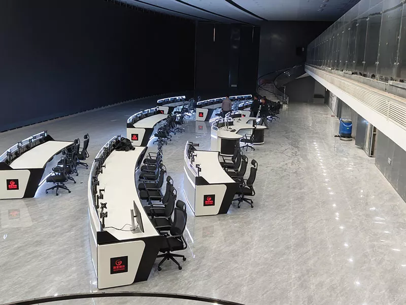 1. Εργονομικός καμπύλος σχεδιασμός για ευκολότερη λειτουργία: Η κυρτή επιφάνεια εργασίας συμμορφώνεται με την οπτική και λειτουργική ροή, επιτρέποντας στους χειριστές να παρακολουθούν εύκολα πολλές οθόνες χωρίς συχνές στροφές, μειώνοντας σημαντικά την κόπωση του λαιμού, των ώμων και της πλάτης από μεγάλες βάρδιες και βελτιώνοντας την αποτελεσματικότητα παρακολούθησης.